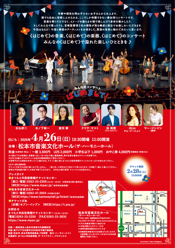 主催:一般財団法人松本市芸術文化振興財団 共催:東アジア文化都市2026松本市実行委員会 後援:松本市、松本市教育委員会、FM長野 協力:ハーモニーメイト 企画制作:まつもと市民芸術館、ザ・ライブラリー、プロマックス |